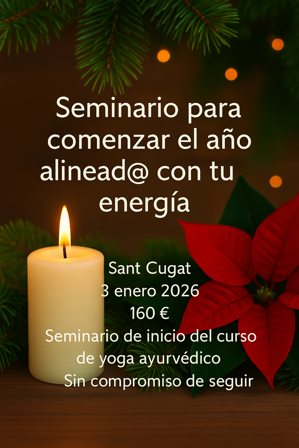 Reserva para el Seminario suelto Inicio de año Sant Cugat , sin compromiso a continuar con el curso completo de yoga ayurvédico dirigido a la salud y la energía. AVISAR ANTES SI HAY PLAZAS !!!!